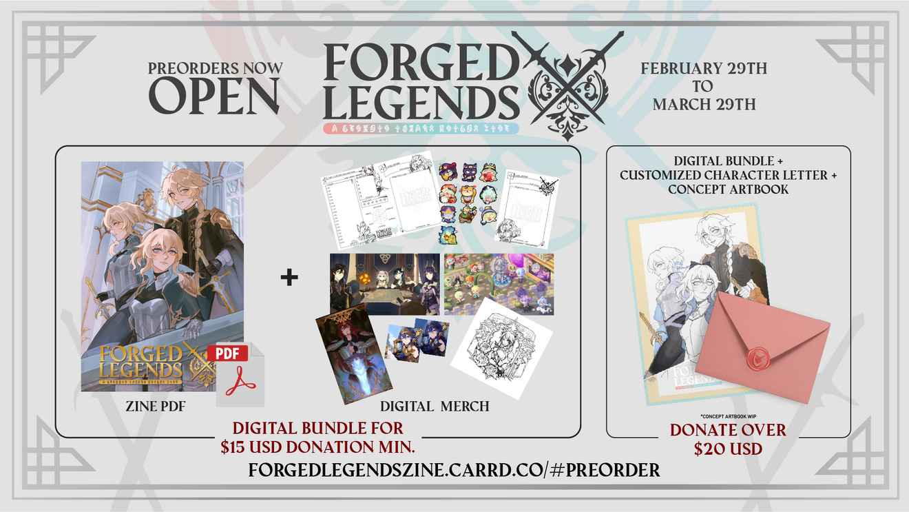 Forged Legends is a FOR-CHARITY, digital-only zine focusing on Genshin Impact characters as fantasy knights from all across Teyvat!